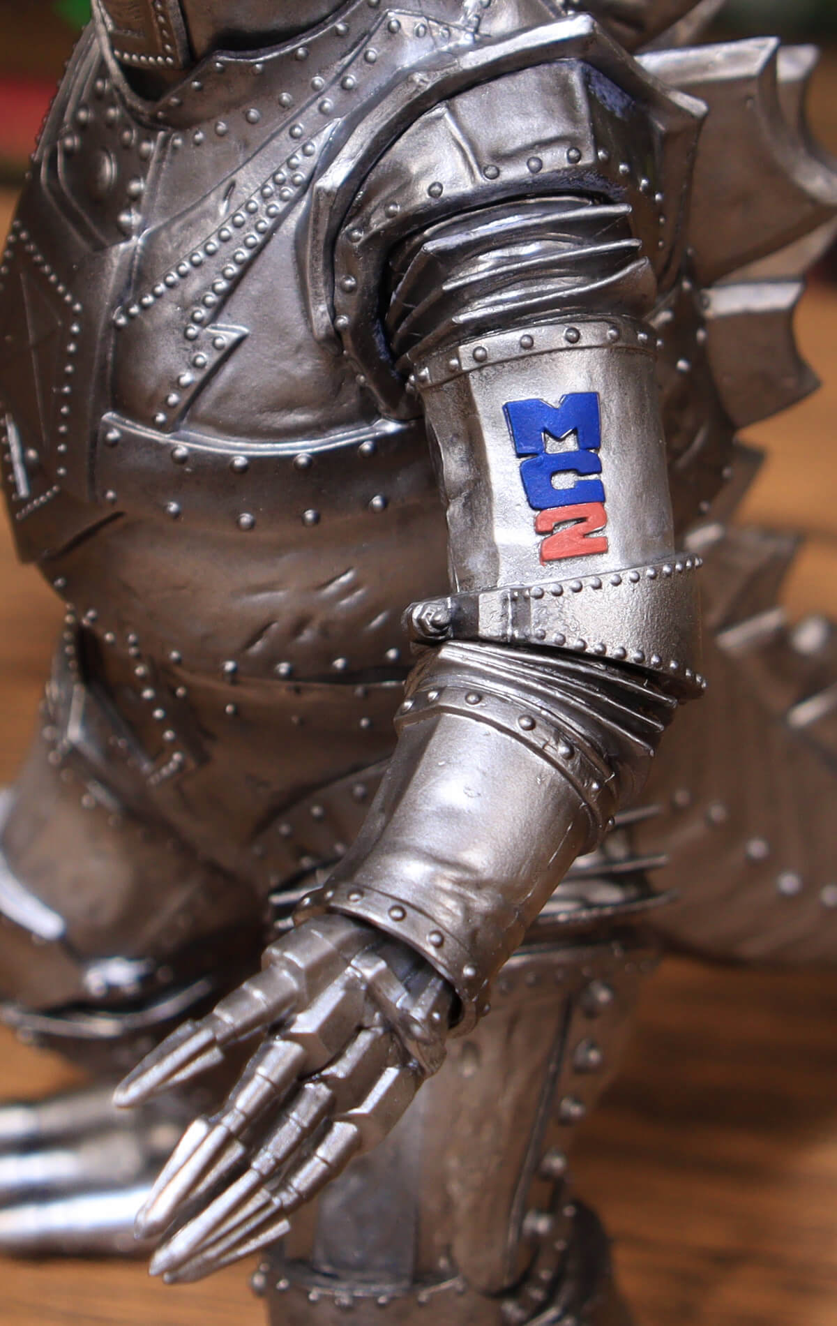 メカゴジラの脚。全身がプレートアーマーのようなメカゴジラだが、この脚は特に中世の騎士感が強い。